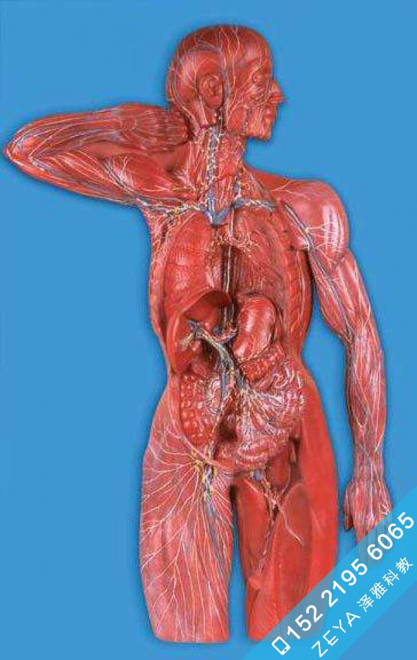 ■ 该模型显示淋巴系统的组成和结构特点,共有63个部位指示标志。