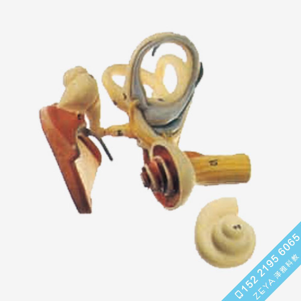 ■ 该模型由内耳、鼓膜听小骨和耳蜗等3个部件组成,并显示内耳迷路、鼓膜、听小骨和耳蜗、前庭蜗神经等结构,共有20个部位指示标志。
