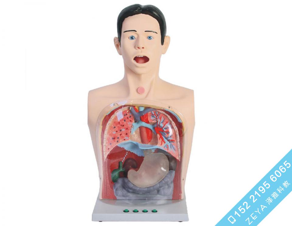 ■ 模型为成年男性上半身,可实现洗胃时的多种体位:仰卧位、左侧卧位、坐位。